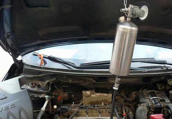 Подключите компрессор и установите соответствующее давление. Осмотрите собранную конструкцию на предмет наличия утечек. Если их нет, можно начинать промывку, поочередно запуская и останавливая двигатель.